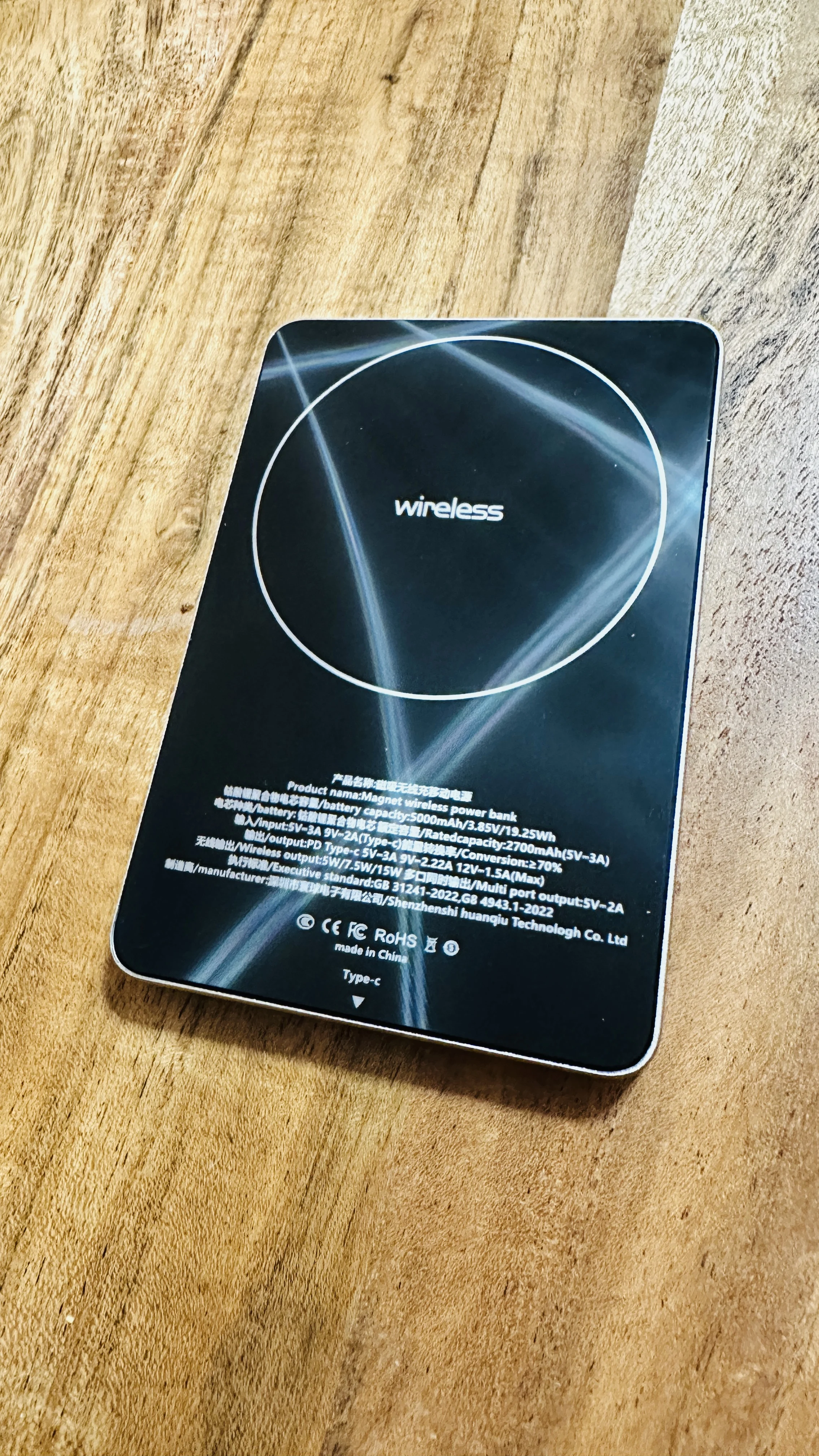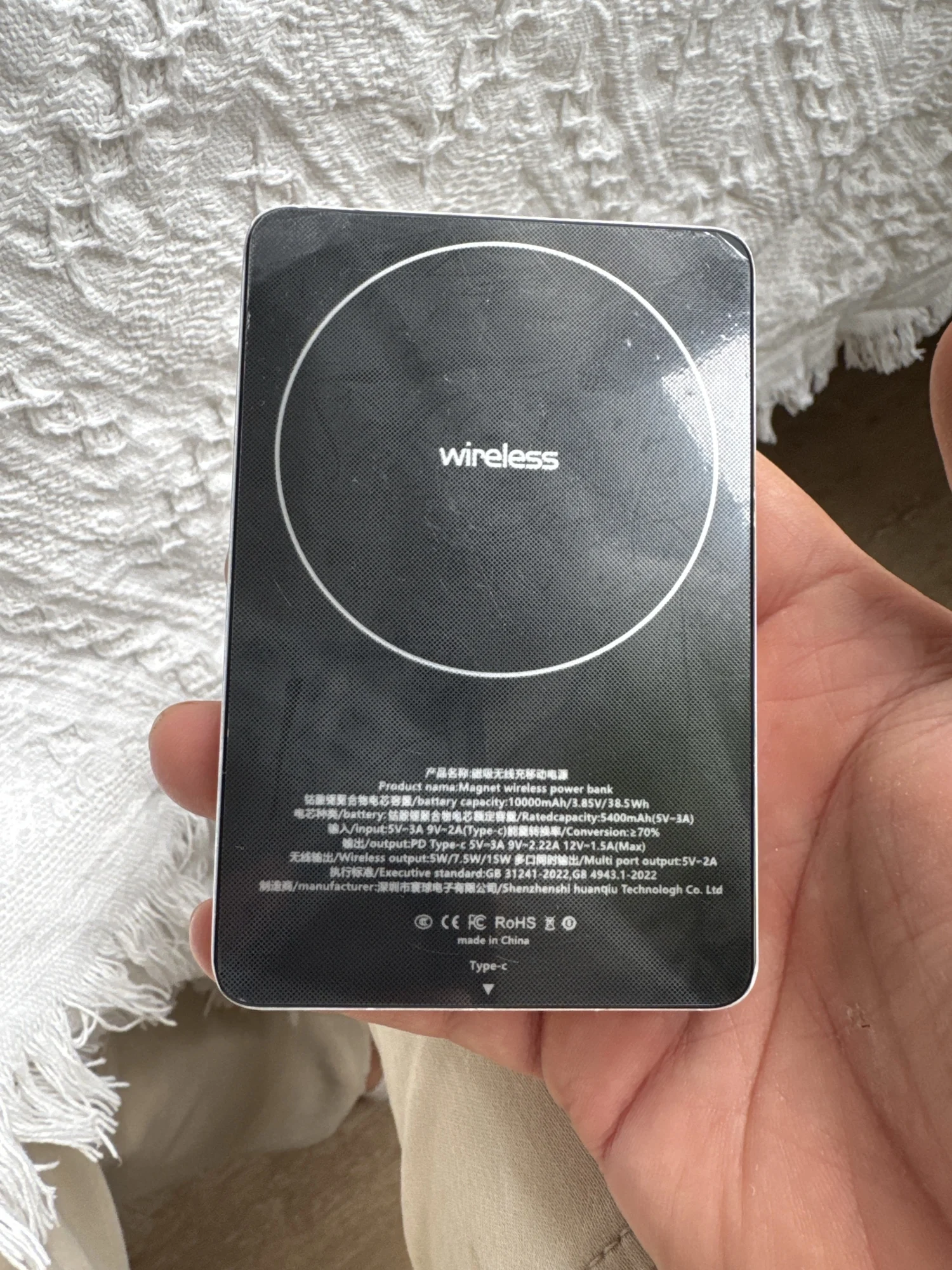 Capacity: 5000mAh Thin Wireless Power Bank