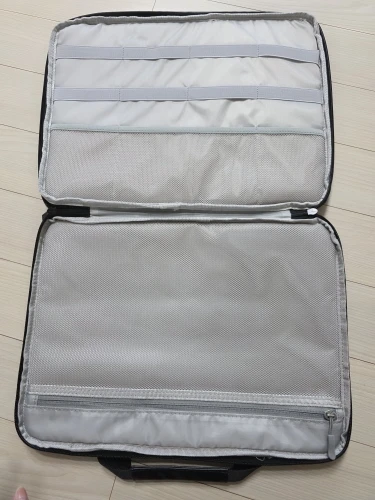 At the back, there is a laptop storage space. Based on the front side, you can store items by opening the short vertical zipper on the left side. I am satisfied with the material that is soft like fleece lining without any scratch concerns.