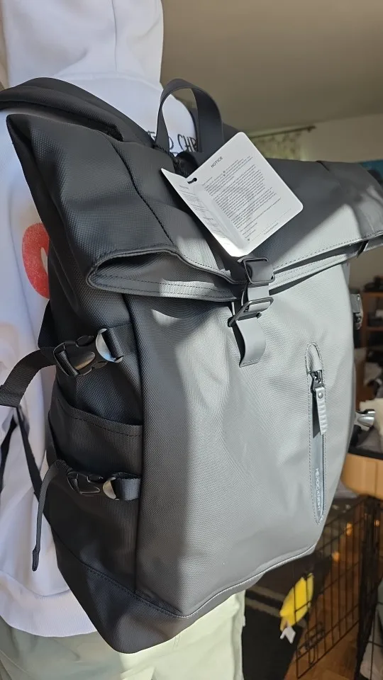The volume of the laptop backpack varies from 18L to 27L, with the dimension of 30x15x45cm (rolled) and 30x15x60cm (unrolled). This is a very versatile backpack that can hold clothes for travelling, A4 tablets or 15.6 inch laptop.
