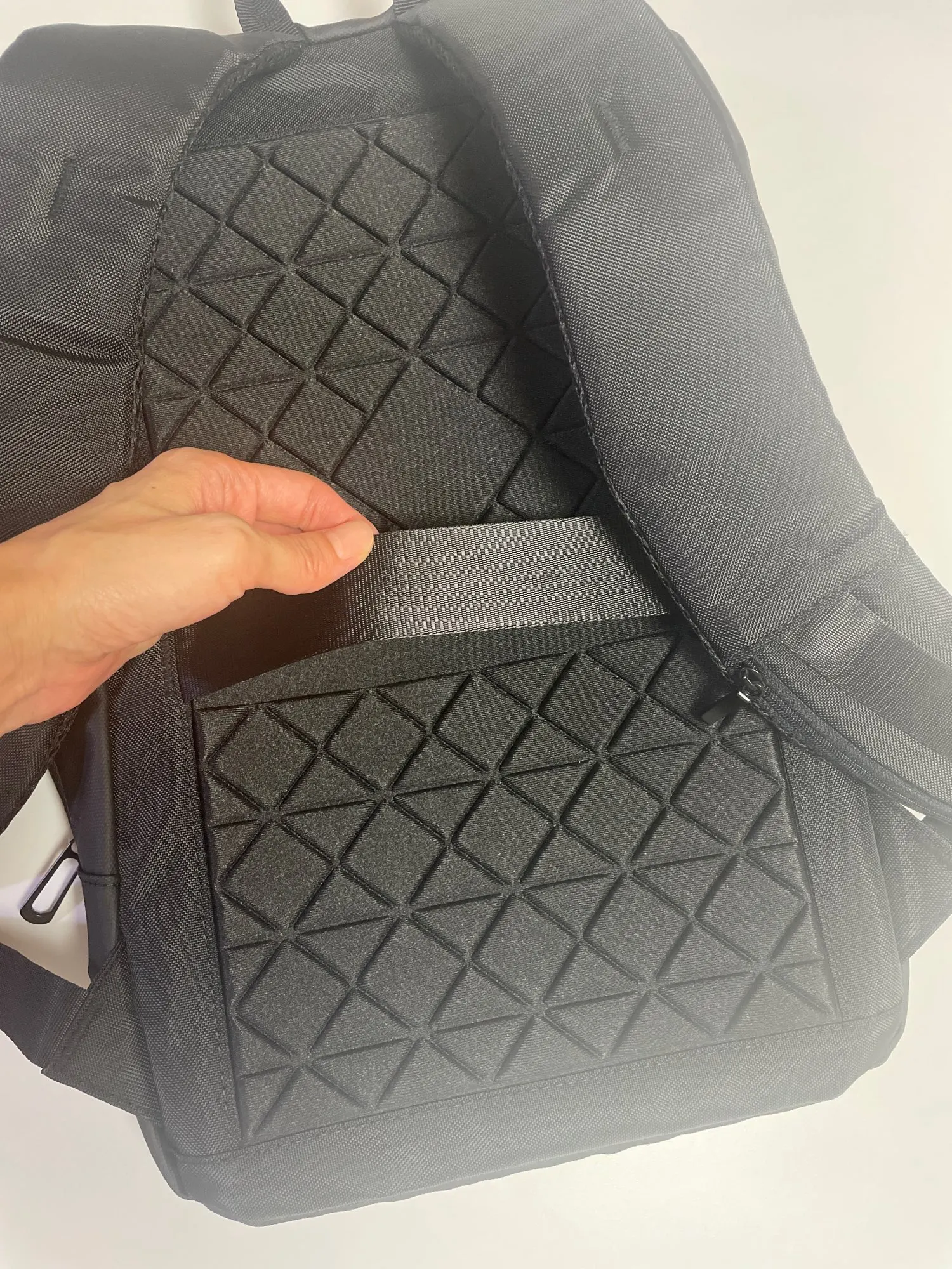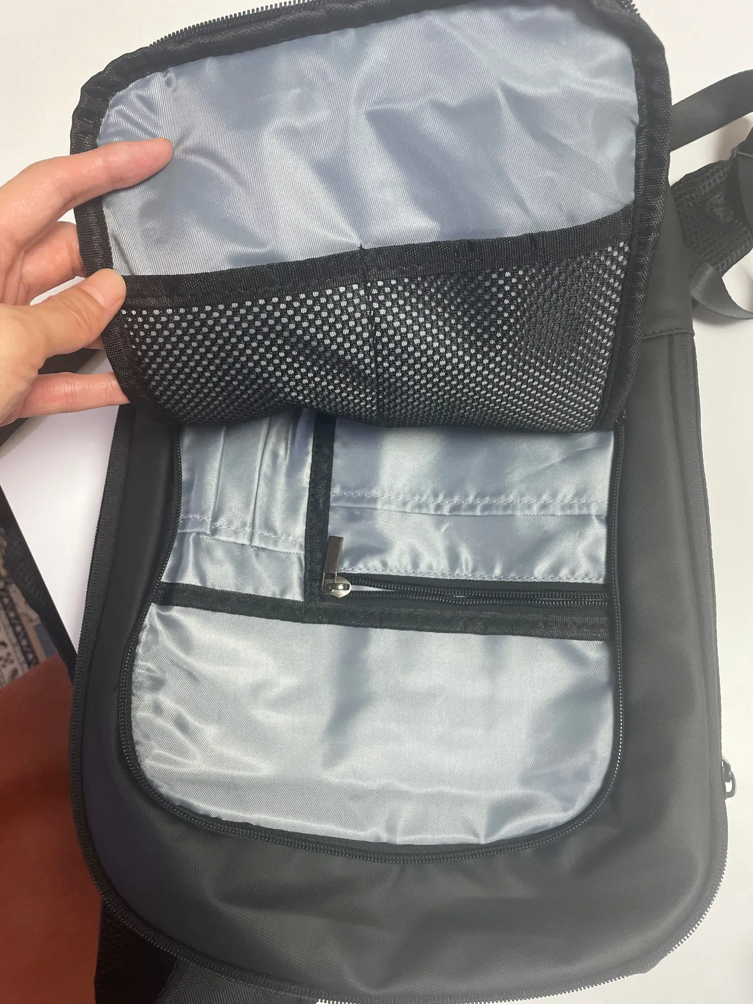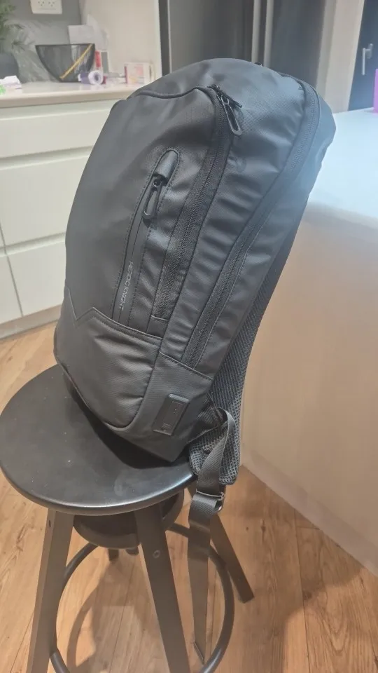 It's thinner than expected, but since I'm not someone who can carry anything heavier anyway... I think I made a really good choice! I haven't tried going out with it yet, but there's plenty of space for a 14-inch laptop. I've dropped it with water droplets, but I think it'll be fine even in light rain.
