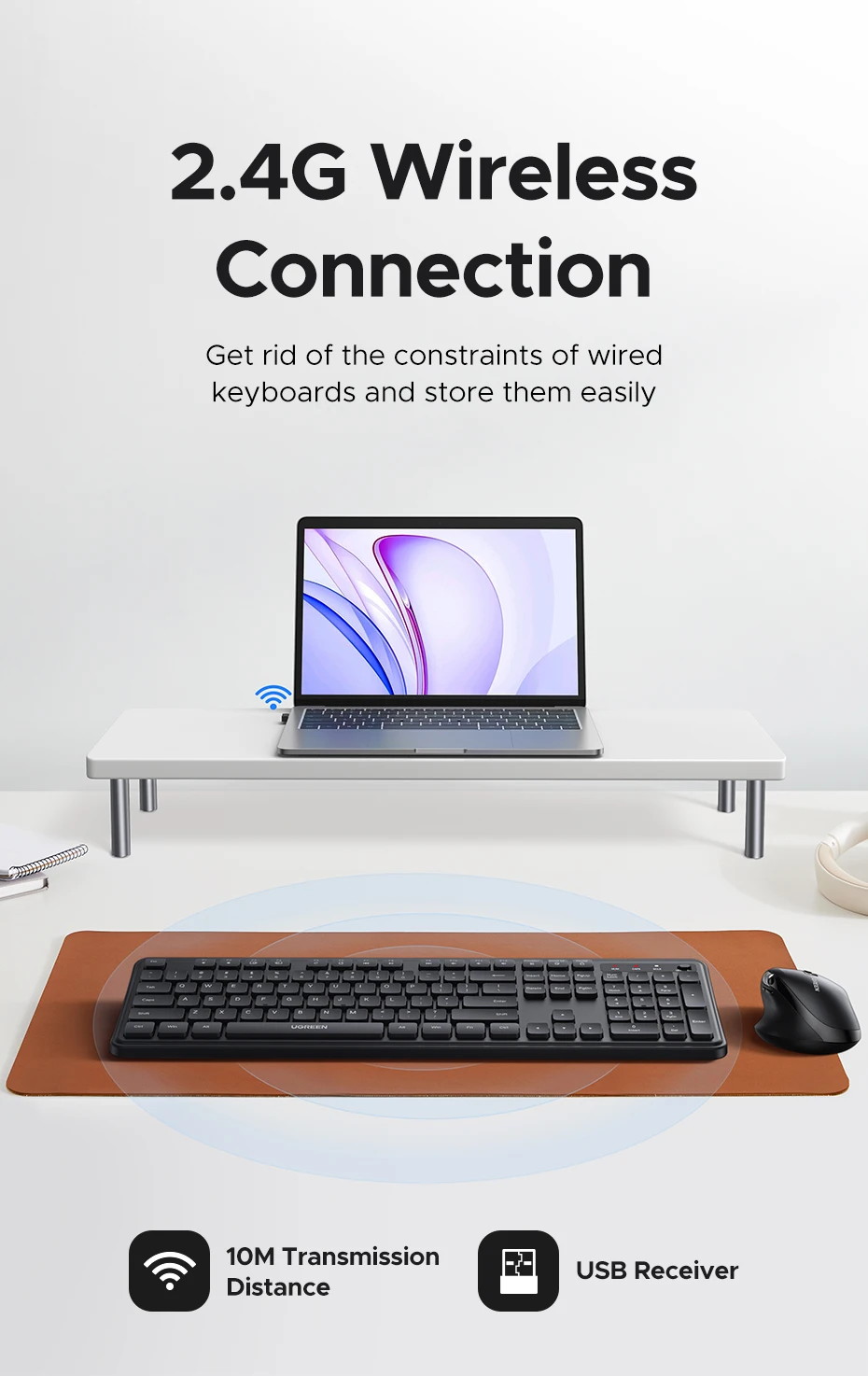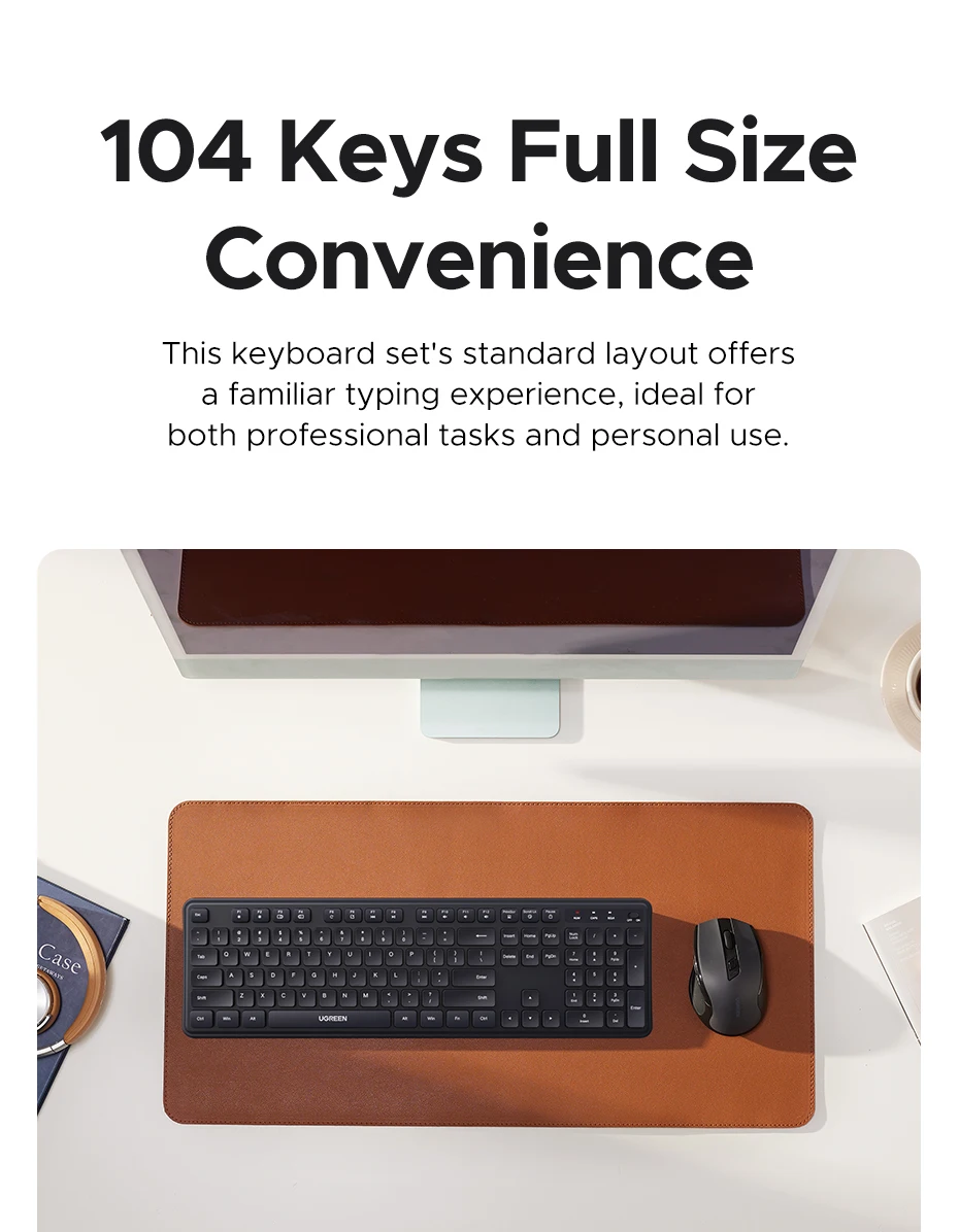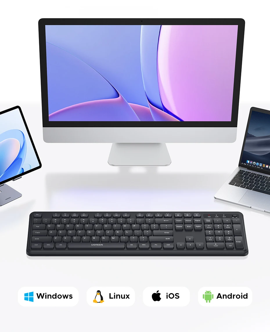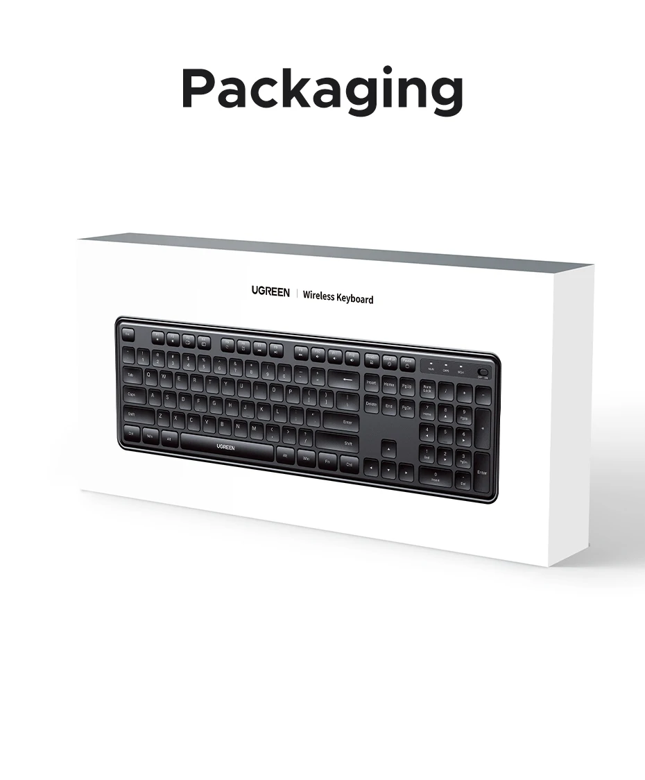 UGREEN 2.4G Wireless Keyboard 104 Keys Ultra-Slim US RU Layout Wireless Keyboard Black for PC Laptop Desktop