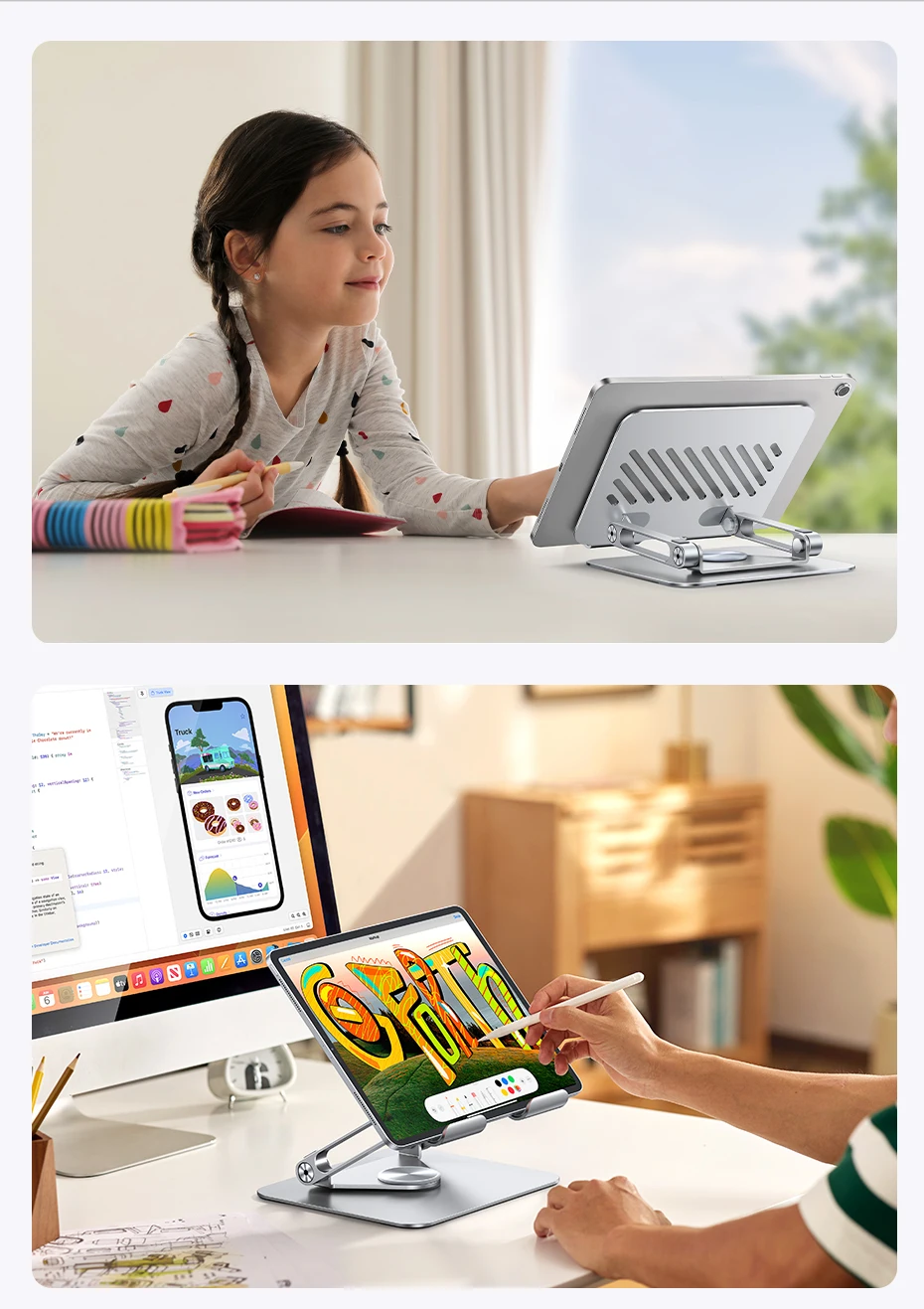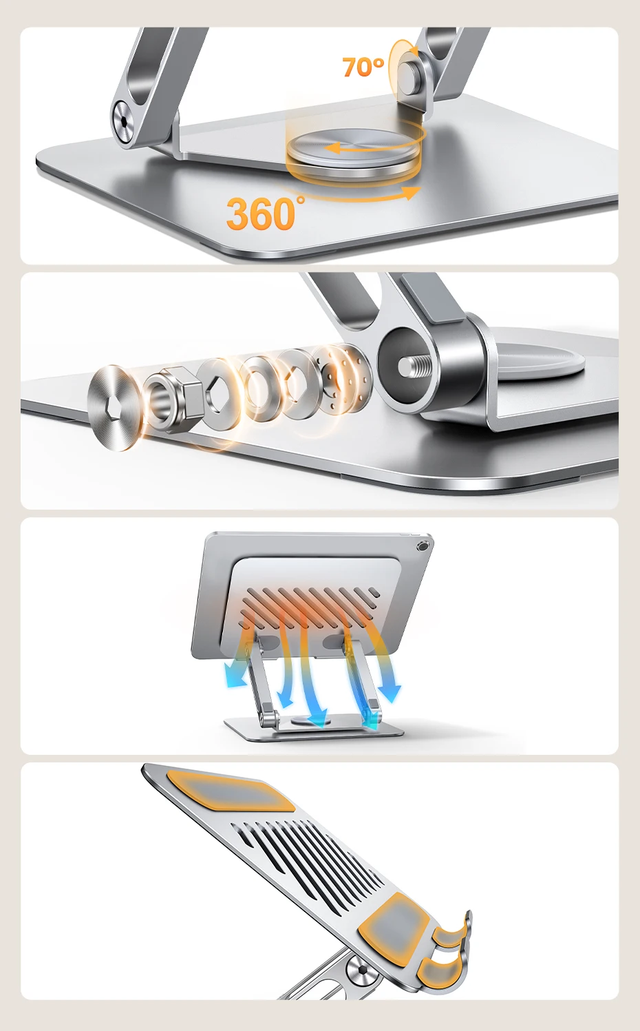 UGREEN Tablet Phone Stand 360°Rotatable Aluminum iPad Stand For iPad Pro iPhone Xiaomi Tablet Support Laptop Stand Tablet Holder